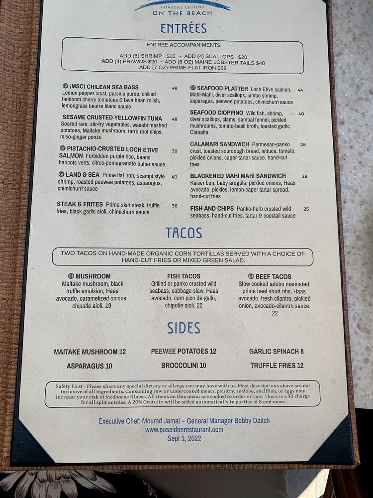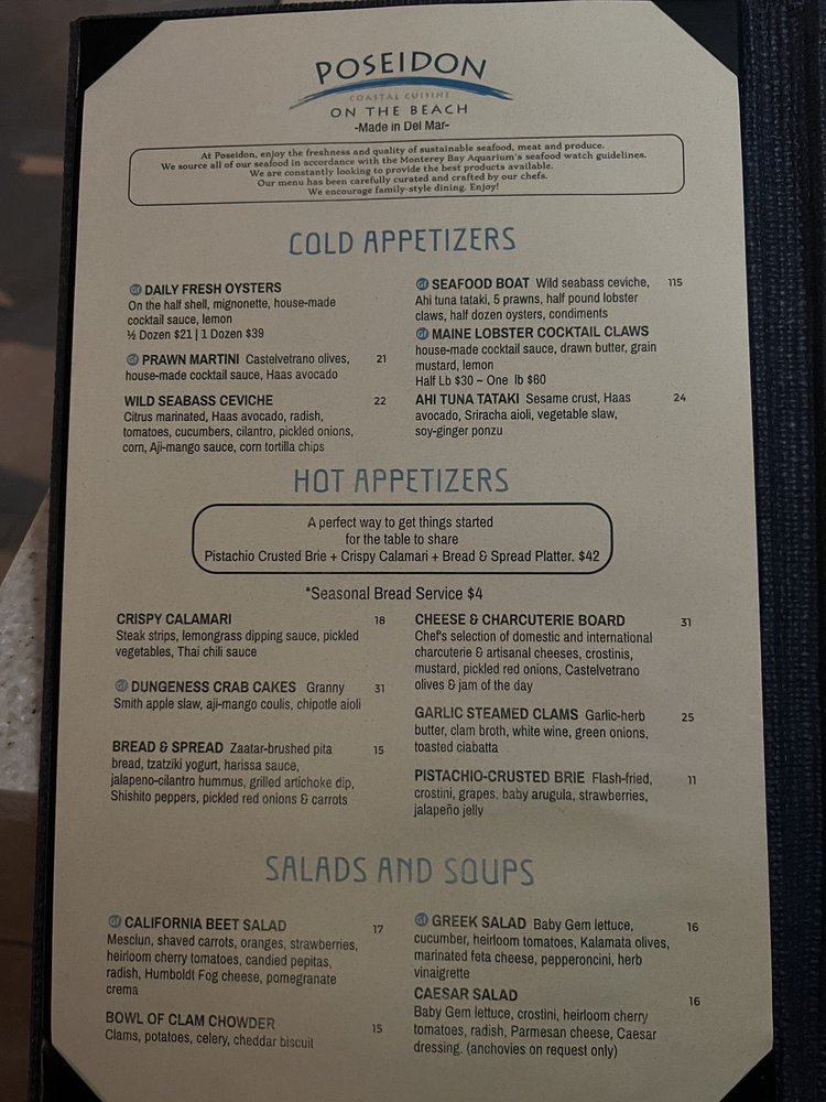 Poseidon On The Beach in Del Mar, CA is a bustling seafood bar that caters to all types of clientele. With numerous amenities like reservations, takeout, vegan and vegetarian options, it's a go-to spot for families and groups. The outdoor seating provides a picturesque backdrop, perfect for a relaxing dining experience. Noteworthy dishes like crab cakes and Fish and Chips are flavorful and fresh, while the generous portions keep customers coming back for more. The friendly and efficient service adds to the overall dining experience. Whether you're enjoying a casual meal or a special occasion, Poseidon On The Beach is a must-visit for seafood lovers looking for a delightful dining experience.